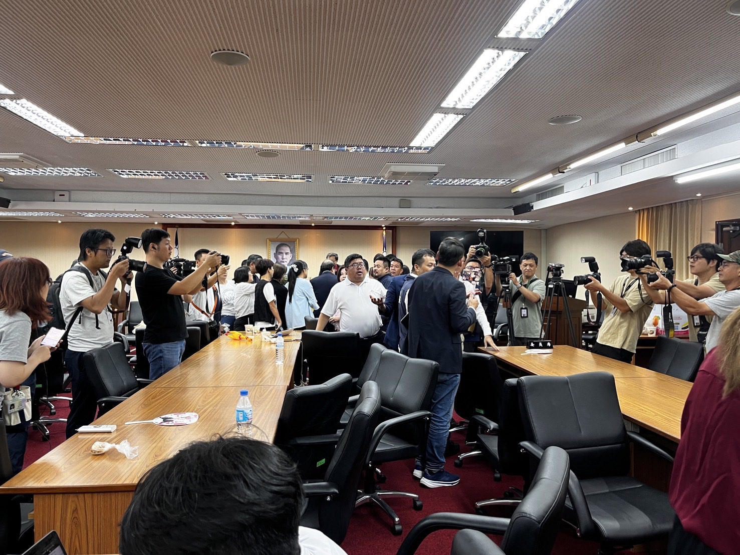 與此同時,內政委員會大門打開,藍委徐巧芯見到綠委林楚茵坐在主席台上,衝上前要將其拉下。黃捷也參與爭執,雙方幾乎發生肢體衝突。