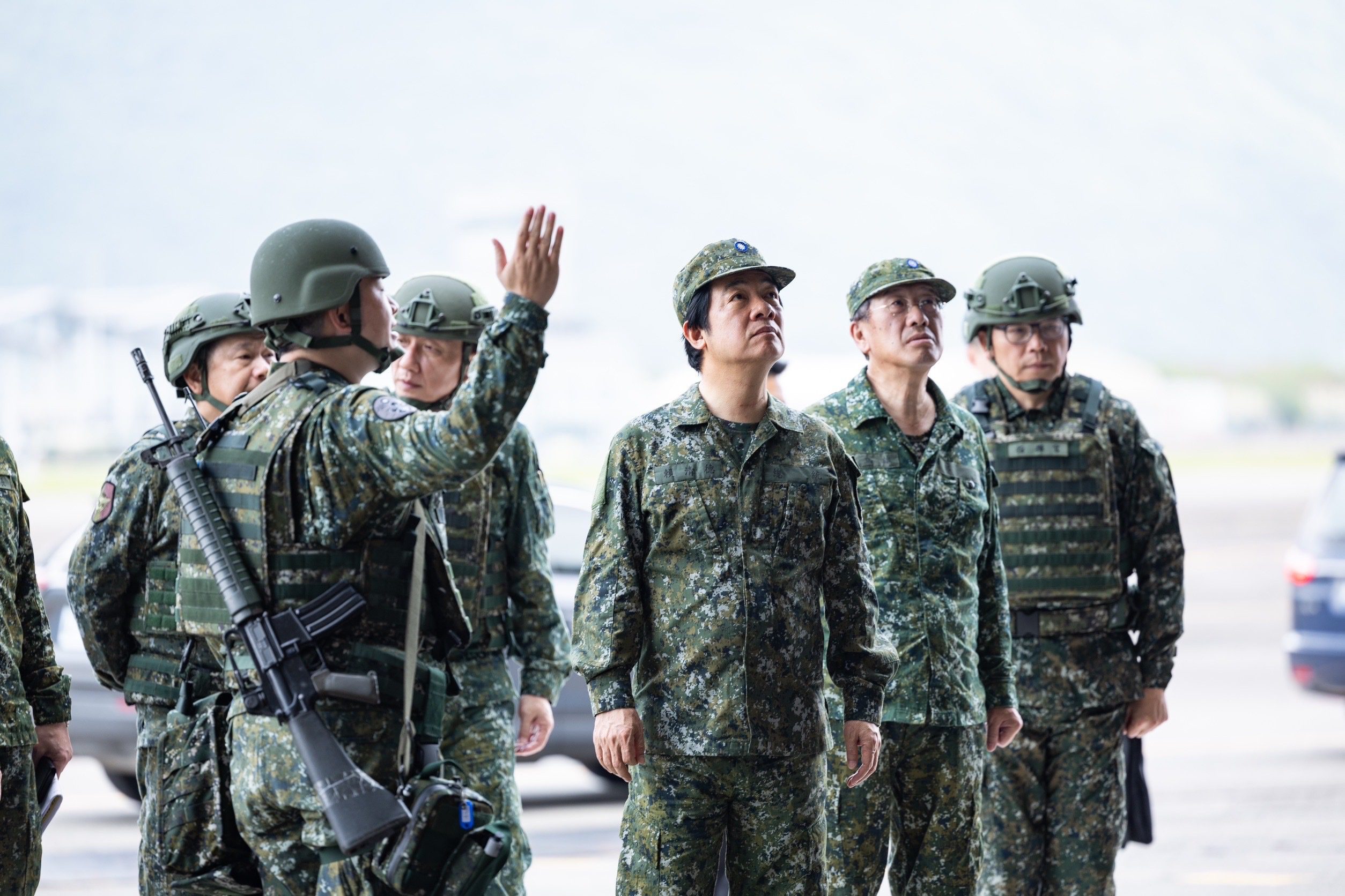 賴清德說,看到參演官兵的演練成果與高昂士氣,對大家平時扎實訓練,隨時做好保衛國家準備的精神表達肯定,並期望在接下來的演習過程中,持續專注各項操演及訓練。