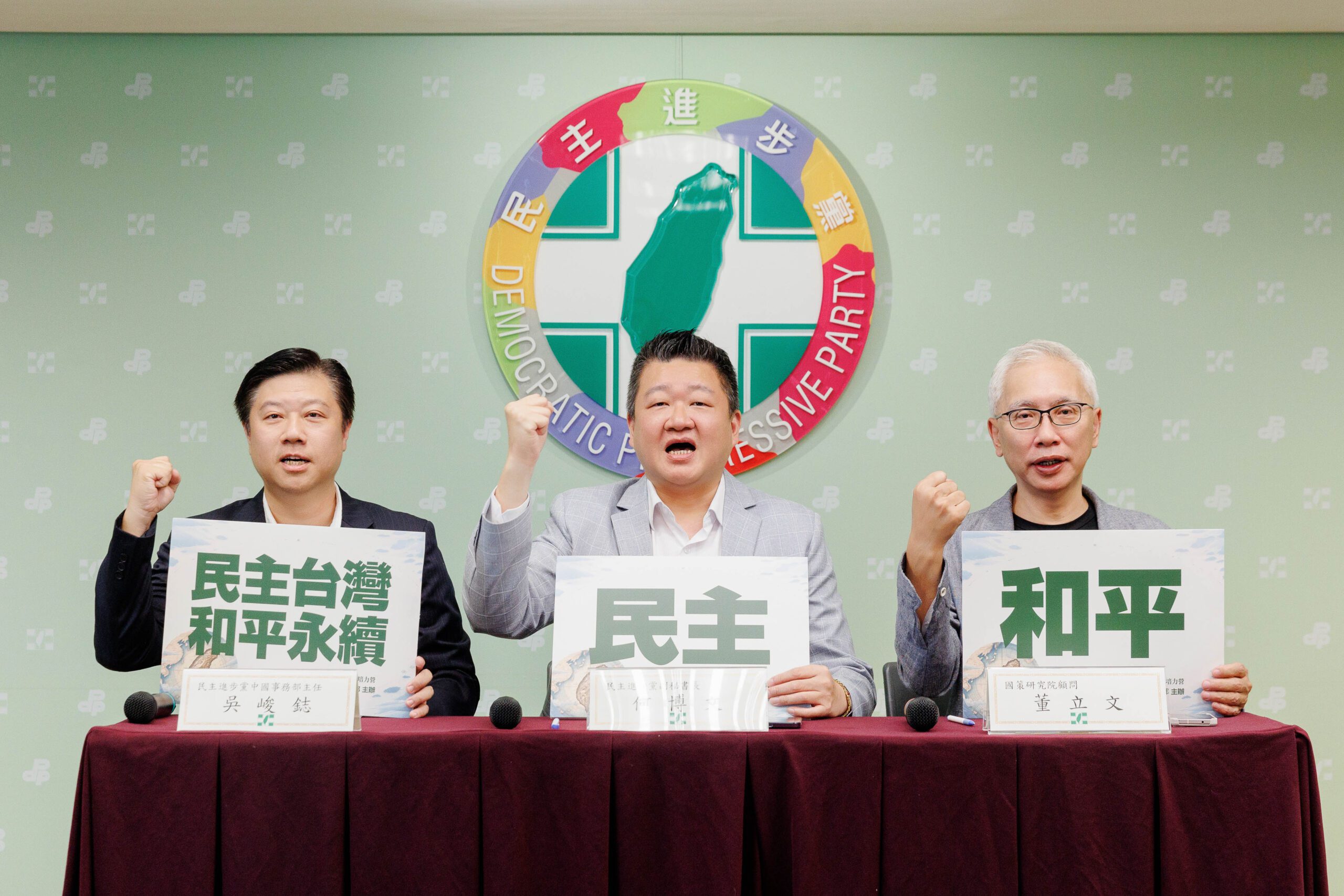 民進黨中國事務部今(23)日(二)於中央黨部召開「民主台灣.和平永續 2024新生代國家安全培力營」啟動記者會,由民進黨新聞部吳崢主任主持,民進黨副秘書長何博文、民進黨中國部吳峻鋕主任、國策研究院顧問董立文一同出席。