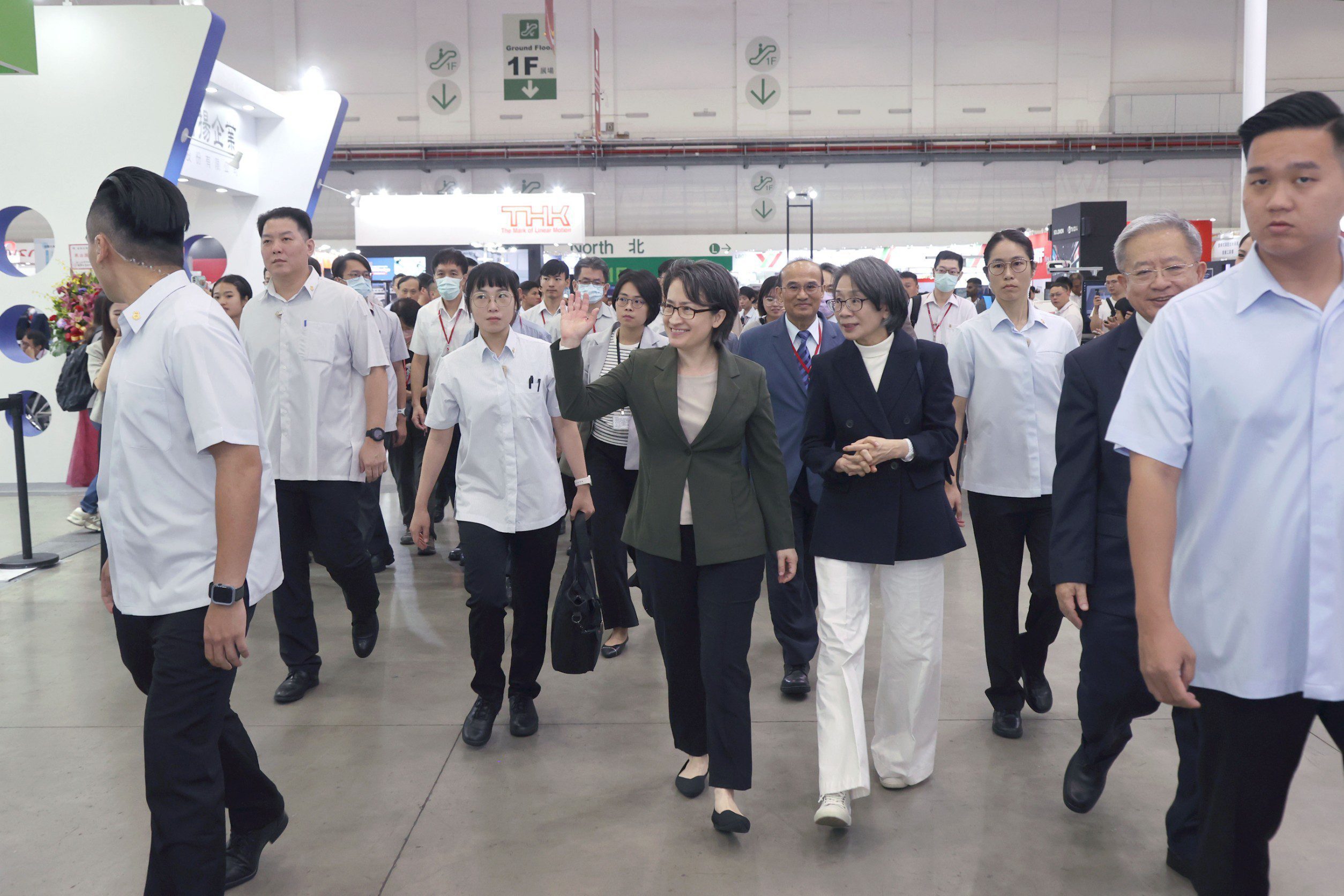 蕭美琴抵達展場後,先後參觀了「上銀科技」、「國科會智慧機械科技創新館」、「經濟部科技研發主題館」、「所羅門」、「達明機器人」、「廣運機械」、「新漢智能」、「PMC精密機械研究發展中心」、「台達電子」及「研華科技」等攤位。她深入了解了人工智慧(AI)及其他尖端技術在智慧製造中的應用及未來發展趨勢,並與各廠商代表進行交流。