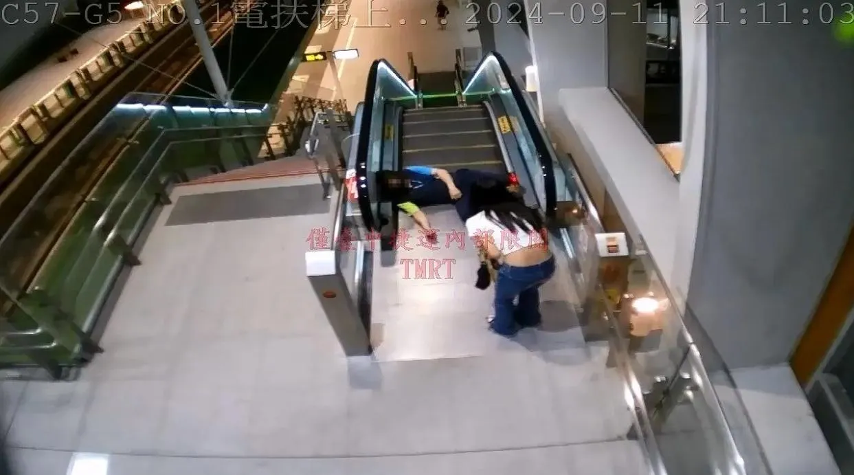 自監視器畫面中發現,許男搭手扶梯上樓時,晚間9時9分就昏倒在手扶梯上,而手扶梯持續運行,9時10分1名女乘客搭手扶梯上樓,才發現昏倒的許男,通報後該站女站長9時11分前往協助,女站長扶起許男後,許男往後倒地不起。