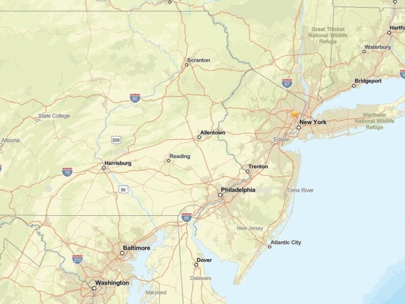 美聯社報導,地震震央位於紐澤西州郊區的哈斯布洛克高地(Hasbrouck Heights),距離紐約市中央公園(Central Park)不到13公里,震源深度僅10公里。