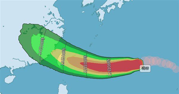 中央氣象署預報員林定宜今天在記者會中表示,預估最快12日上午就會發布颱風楊柳海上颱風警報,傍晚至晚間發布陸上颱風警報,13、14日是楊柳最接近台灣的時間點。