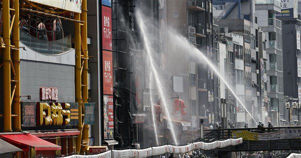 「每日新聞」報導,當地消防單位今天上午9時50分左右獲報,道頓堀北側的宗右衛門町有棟內含許多商家的建築物1樓起火。