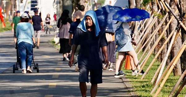 中央氣象署表示,今天東半部普遍為31至33度,西半部則可達34、35度,局部溫度都會更高一些,尤其大台北盆地及中南部近山區局部可能達到36度或以上,且近中午前後紫外線偏強,會來到過量甚至危險等級。