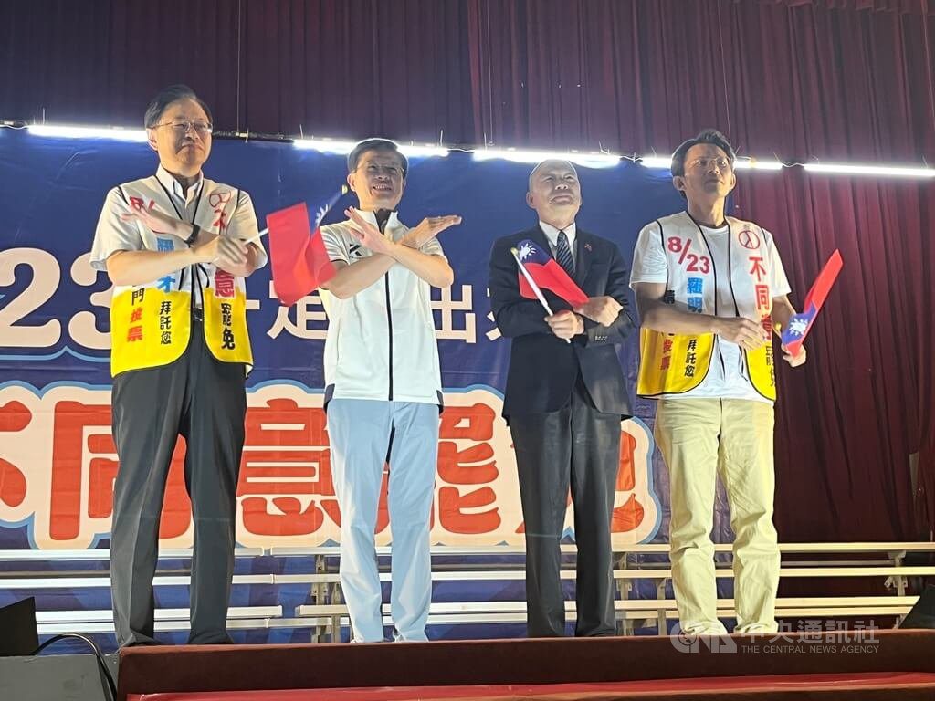朱立倫表示,從沒看過任何國家發動對在野黨大罷免,「這是全世界民主之恥」,請大新店地區民眾明天投出最多不同意票。