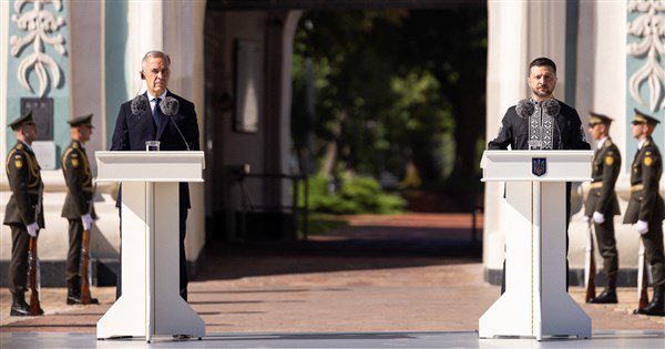 路透社報導,澤倫斯基(Volodymyr Zelenskyy)在基輔索菲亞廣場(Sophia Square)發表演說,他告訴現場多名政要:「我們全致力確保這場戰爭的終結,將為烏克蘭帶來和平的保障,讓戰爭或戰爭威脅都不會成為我們子孫必須承受的負擔。」