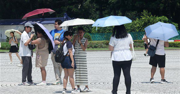 (中央社台北25日電)氣象署表示,今天各地高溫炎熱,大台北及桃園可能出現37至38度極端高溫,中午紫外線易達過量、甚至危險等級;午後桃園以南及其他山區有短暫雷陣雨,苗栗以南山區有大雨機率。