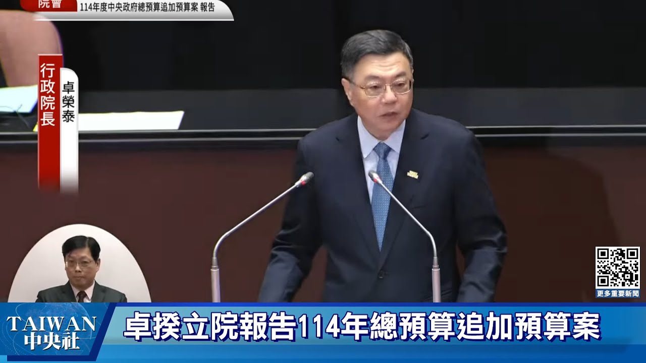 立法院會今天邀請行政院長卓榮泰、主計總處主計長陳淑姿、財政部長莊翠雲及相關部會首長列席報告「114年度中央政府總預算追加預算案」編製經過,並備質詢。