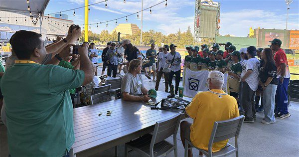 (中央社記者張欣瑜沙加緬度27日專電)剛贏得威廉波特世界少棒錦標賽冠軍的台北市東園國小教練團和小將今天抵達MLB運動家隊的臨時球場觀賽,總教練賴敏男原定開球,但傳出運動家高層因球隊即將搬遷內華達州,台灣隊則在總冠軍賽擊敗內華達州代表隊,介意之下取消開球,球隊公關為此致歉。