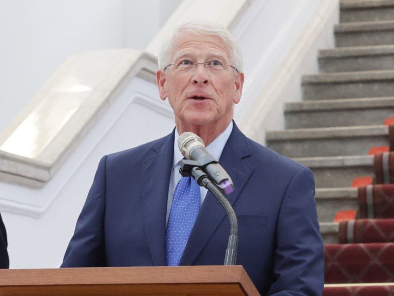 賴總統下午在國安會秘書長吳釗燮等人陪同下,在總統府接見美國聯邦參議院軍事委員會共和黨籍主席韋克爾(Roger Wicker)及共和黨聯邦參議員費雪(Deb Fischer)等人。