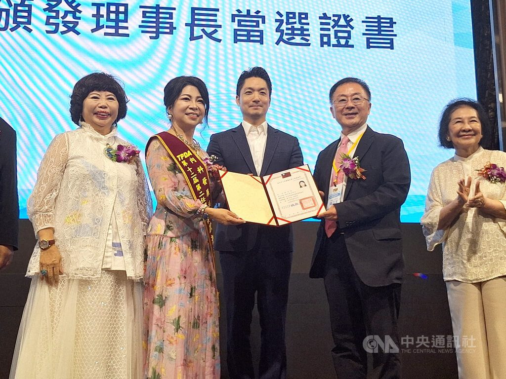 台北內湖科技園區發展協會1日舉辦理事長交接典禮,由大學光董事長歐淑芳(左2)接任理事長。中央社記者何秀玲攝 114年9月1日
