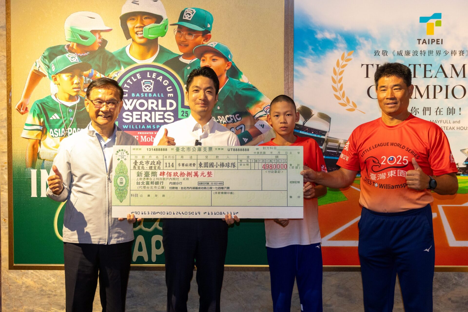 臺北市萬華區東園國小少棒隊在2025威廉波特世界少棒錦標賽勇奪世界冠軍,為臺灣棒球再寫輝煌歷史。市長蔣萬安隨後也於9月1日兌現承諾,特別安排慶功餐會,慰勞所有小球員及辛苦的教練團,並感謝教練長年悉心栽培與家長給予的支持,讓孩子可以無後顧之憂、專注於賽事。為選手提供更多支持,市府更宣布加碼提供「棒球訓練獎勵大禮包」,期盼能持續孕育更多棒球人才。
