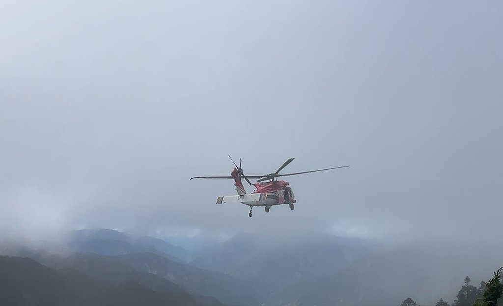 1支19人登山隊5日由塔塔加登山口出發攀登玉山,其中50歲女山友6日清晨在玉山主峰攻頂後下撤至主北岔路風口時,不慎摔傷無法行動,且有失溫疑慮,經空中勤務總隊出動直升機吊掛救援送醫。(南投縣消防局提供)中央社記者鄭維真傳真 114年9月6日