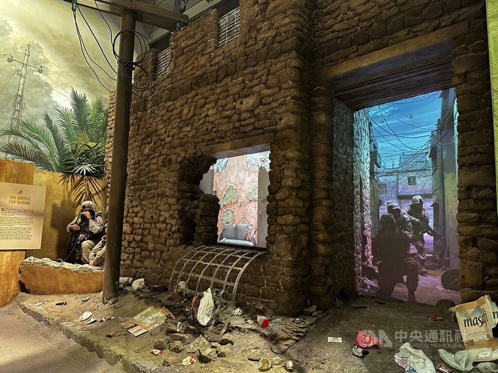 館內另一大亮點則是結合創新科技與文物,讓參觀民眾得以沉浸在陸戰隊行動的聲光體驗中。例如,其中一個展間仿造伊拉克場景,搭配播放美軍行動影片,讓人宛如置身當地街頭。