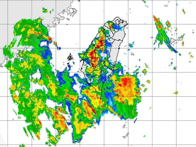 (中央社台北19日電)氣象署表示,對流雲系發展旺盛,易有短延時強降雨,今天嘉義縣有局部大雨或豪雨,桃園、苗栗至台南、花蓮、台東地區、蘭嶼、綠島、恆春半島及新北、新竹、高屏山區有局部大雨發生機率。