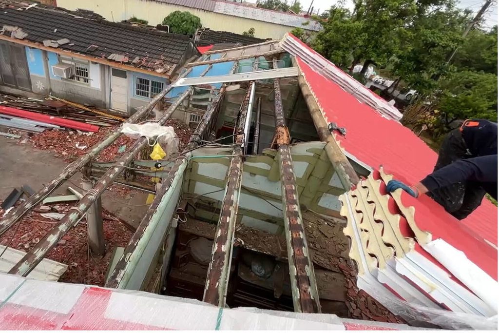 將軍區黃姓男子與太太居住的平房在丹娜絲風災時受損,黃姓男子今天接受媒體聯訪表示,近兩個月來與太太分別住在兒子和女兒家,利用假日或有空時回到老家整理善後,前幾天屋頂要全面翻修拆除,但工班因為缺料暫時無法把新屋頂全部補上。