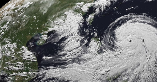 中颱樺加沙出現明顯颱風眼。圖為20日下午4時30分台灣上空衛星雲圖。(圖取自NCDR天氣與氣候監測網網頁watch.ncdr.nat.gov.tw)