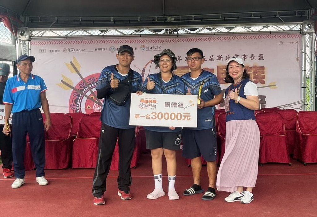 (中央社記者黃旭昇新北20日電)第5屆新北市長盃原住民族傳統射箭邀請賽,今天在樹林區鹿角溪射箭場登場,吸引全國100支隊伍、逾300名選手參賽,展現精湛箭藝。比賽結果,團體組冠軍由澳花射箭隊A奪得。