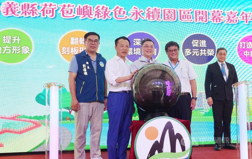 荷苞嶼綠色永續園區今天舉辦開幕嘉年華會,除卓榮泰蒞臨,民進黨立委蔡易餘、環境部長彭啓明、嘉義縣長翁章梁、嘉義縣環保局長張輝川及達和鹿草環保股份有限公司代表台泥企業團董事長張安平等人都出席,共同為園區揭幕。
