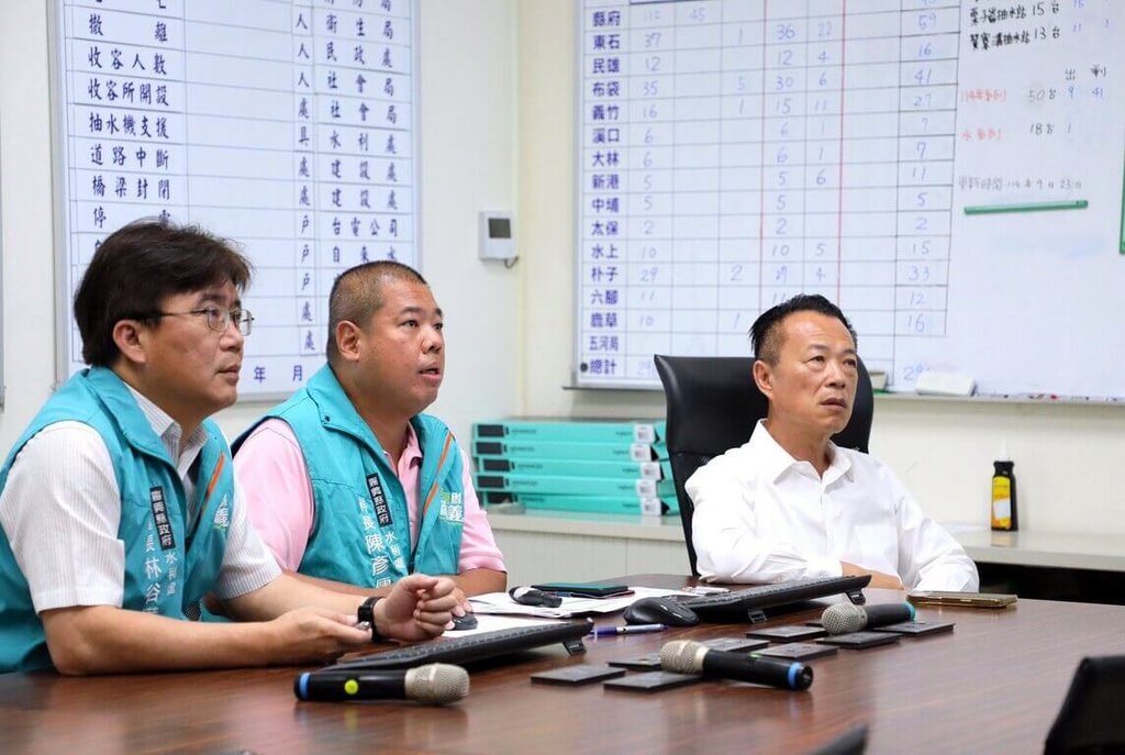嘉義縣政府發布新聞稿,位於嘉義縣政府的水利處災害緊急應變中心牆面上裝設多塊顯示螢幕,可監控颱風動態、河川水位及抽水站運作等關鍵資訊。