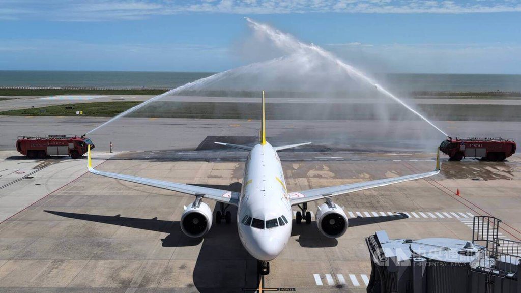 長伶國際旅行社有限公司主辦「金門—汶萊直航雙向包機」,自汶萊出發航班今天下午約1時30分抵達金門,金門尚義機場安排水門禮迎接,李文良也到場接機。