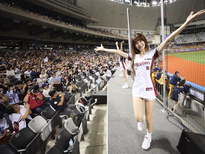 圖為桃猿啦啦隊樂天女孩帶動加油氣勢。(中央社檔案照片)