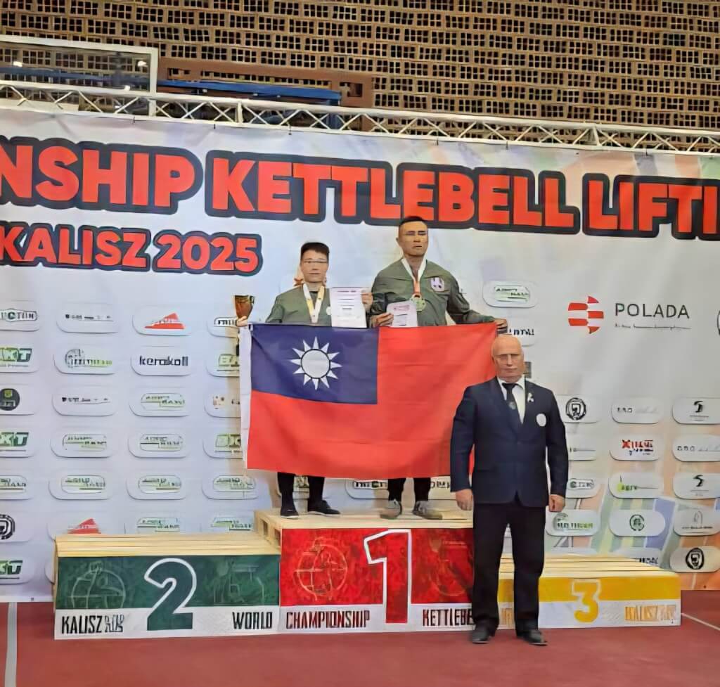 (中央社台北24日電)2025年壺鈴世錦賽22日在波蘭落幕,台灣代表隊勇奪5金、3銀、9銅佳績,展現驚人實力與堅韌毅力。其中,台灣選手丁亞涵、曾詠麟更以卓越表現摘下金牌。在頒獎典禮上,主辦單位播放中華民國國歌,並由台灣選手高舉國旗,感動全場。