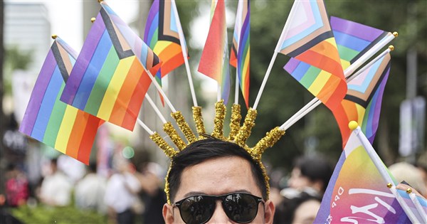 (中央社記者沈佩瑤台北25日電)第23屆台灣同志遊行今天登場,預估約13萬人參與,熱鬧演繹今年主題「超.連結-跨越標籤,理解差異」,期望人們理解不同群體之間的差異,邁向更有韌性與多元包容的社會。