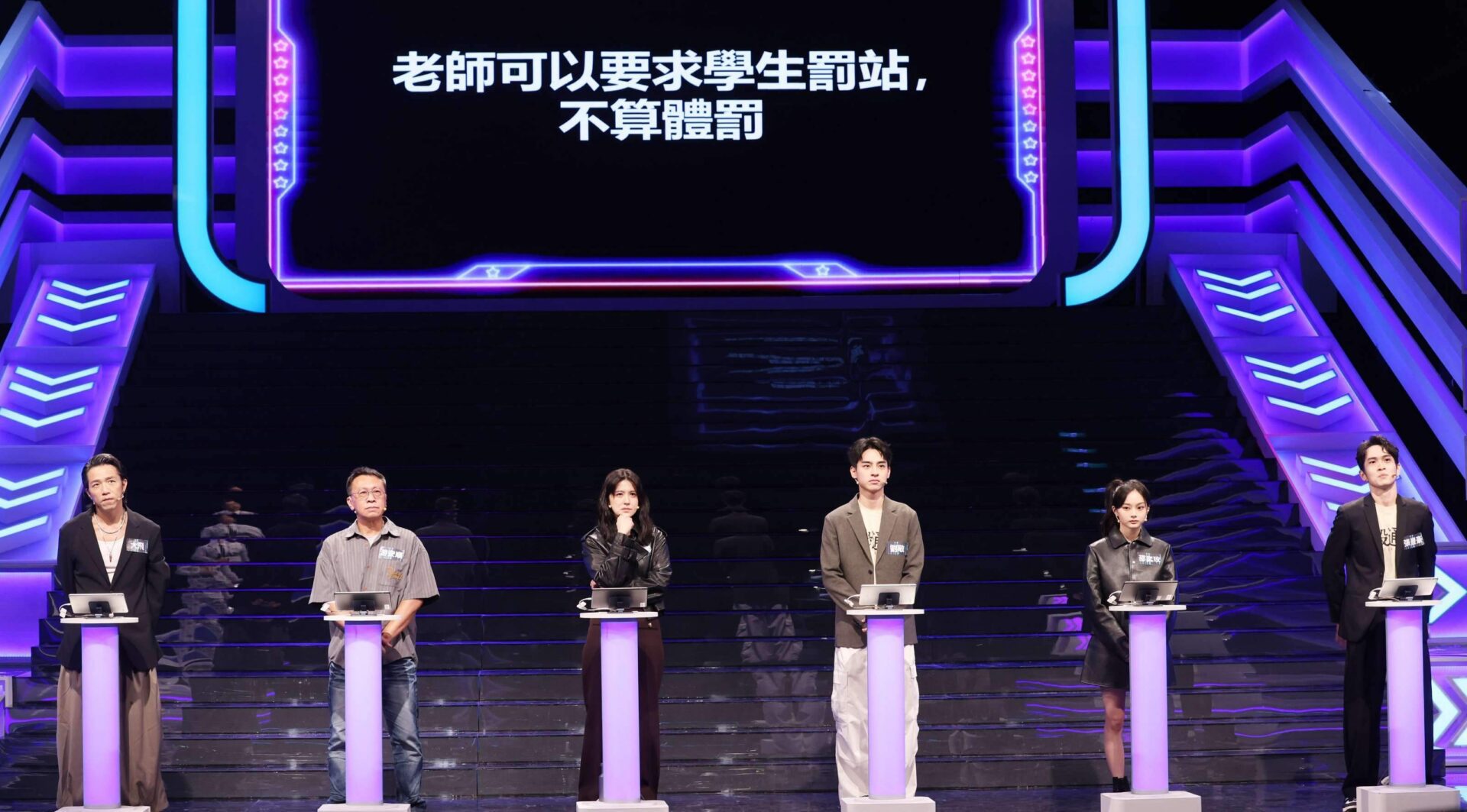 這道關於教育現場罰站的題目,六位藝人都選「╳」,卻沒想到答案公布竟是「○」,讓哈林笑說「全倒!」。節目上的法律專家、律師陳又新則提到藝人們「遭遇過的各種體罰、器具,現在絕對都不行。」,他也說「目前教育部有明確規範出老師管教的方法,而『罰站』就是當中的一種,但也有年齡限制,太小的幼兒可能就不行」;陳又新進一步也說「罰站有時間限制,一次不能超過一堂課,而每天累計不能超過兩小時」,讓哈林聽了點頭直說「原來也有這樣規範」。