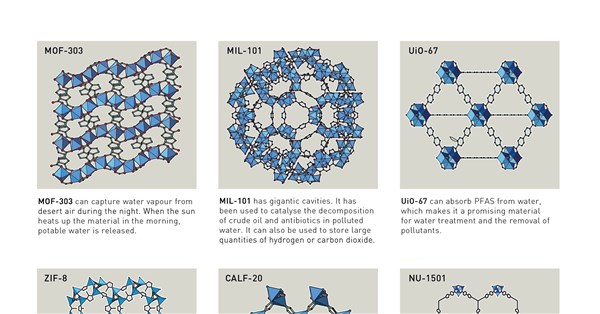 「金屬有機框架」或「金屬有機骨架」可從沙漠空氣中收集水分、捕捉二氧化碳、儲存有毒氣體,或催化化學反應。2020年,亞基創辦氣候科技(Climate Tech)新創公司Atoco,致力運用「金屬有機框架」對抗氣候變遷,並擴大取得飲用水的途徑。